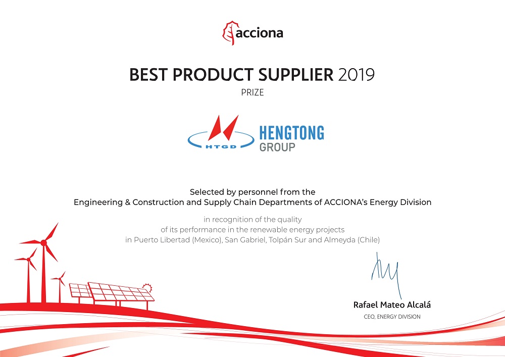 A “Best Supplier Prize 2019” was awarded to HENGTONG recently by ACCIONA, a Spanish EPC contractor in the new energy field.