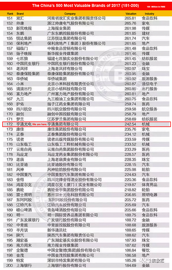 Hengtong is honored to be on the List of China’s 500 Most Valuable Brands