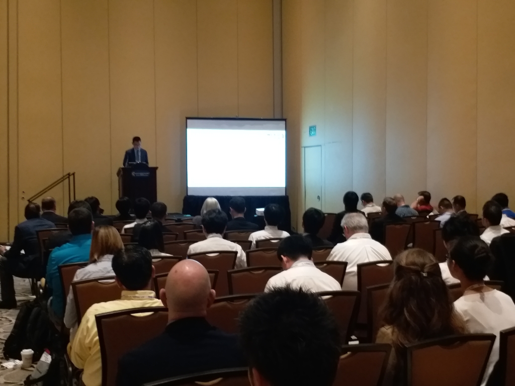 Photo: Tao Wang, the Deputy Director of North America, was giving a speech on Carburization Behavior of the 316L Stainless Steel in an Environment of double interface layer-graphite product of super high temperature and pure water of low temperature.