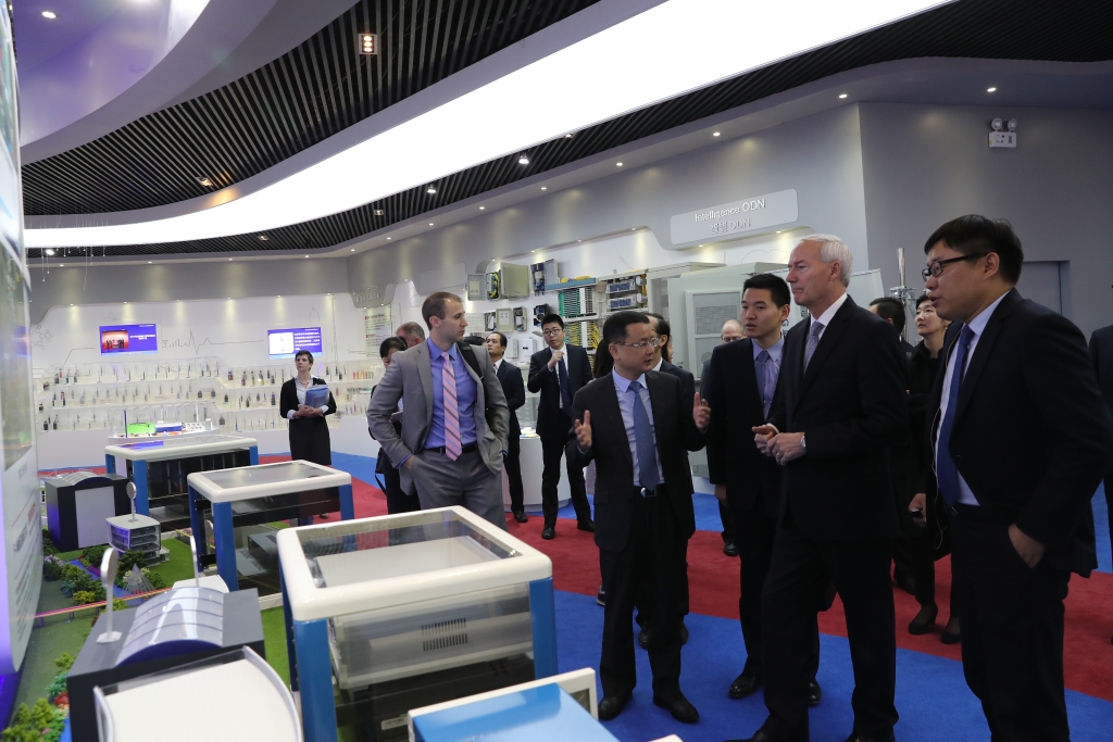 Asa Hutchinson, Governor of American state of Arkansas visited Hengtong Optic-Electric to make deep exchanges on November 4 with Mike Preston, Director of Arkansas Economic Development Commission and Ben Walters, Manager of International Project of Arkansas Economic Development Commission accompanied by Li Sanghua, Chief of US Department of the Chinese People’s Association for Friendship with Foreign Countries (CPAFFC) and Li Wenhui, Deputy Director of Suzhou Foreign Affairs Office.