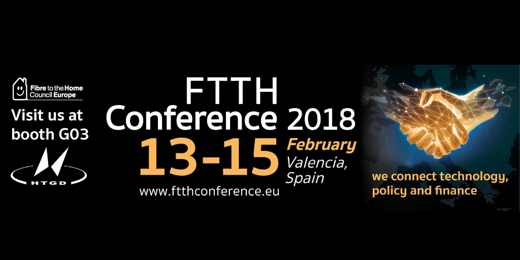 The FTTH 2018 Conference, the largest FTTH event in the world will be held at the Feria Valencia in Spain on Tuesday – Thursday, February 13 – 15, 2018.